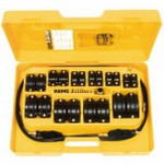 Радиальные клещи для ручного обжатия пресс-фитингов трубопроводных систем из полимерных, металлополимерных, медных труб, а также тонкостенных труб из нержавеющей стали. Усилие обжатия зависит от длины телескопических рукояток и регулируется также механизмом пресс-головки, которая, кроме того, может ... подробнее